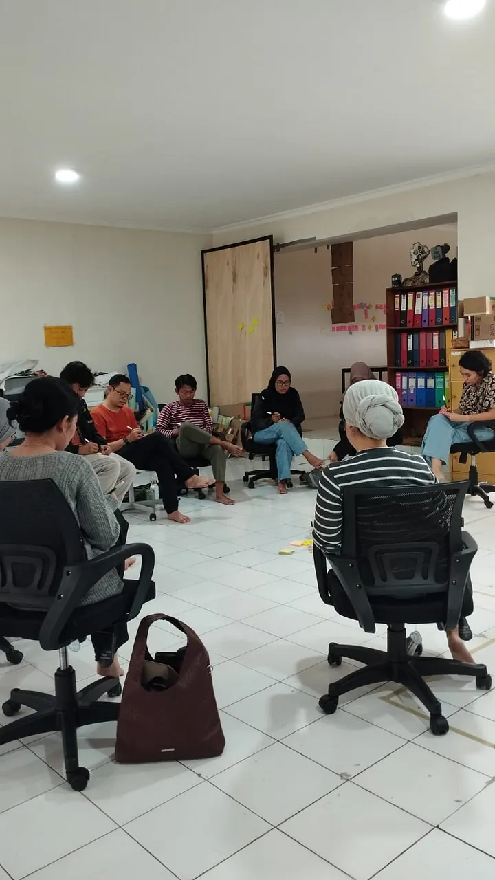 Menariknya, sempat ada pembahasan soal bagaimana berada dalam ruang tanpa struktur itu bisa membuat stres. Tapi justru dari kekacauan kecil itu, terbentuk dinamika yang lebih alami dan kuat. Tidak ada peran yang dipaksakan, tidak ada tuntutan untuk selalu tahu harus berkata apa. Hanya proses menjadi manusia, apa adanya.